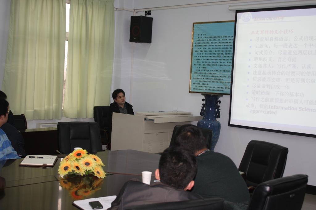 在《科研生活与论文写作》报告中,王保仓教授针对教师们关心的问题,从“何为科研”、“如何做好科研”、“论文写作的技巧”等方面,与教师们分享了自己的科研生活与论文写作。王教授从科研选题开始,指出做好科研首先要有兴趣,兴趣是最好的老师,其次要树立终身学习的观念,以勤补拙,持之以恒。在谈到科研体会时,王教授指出,做科研要有自己的固定方向,不能人云亦云,要多参加学术讨论,多阅读论文与专著,融入主流学术圈。在介绍论文的写作时,王教授又从如何写摘要、如何写引言、如何投稿、如何回复评审人的意见等方面做了详细阐述。