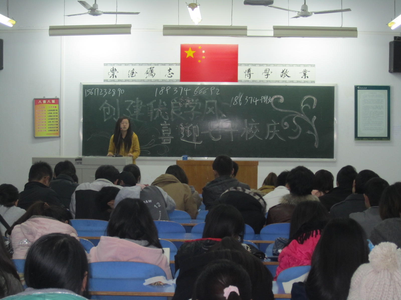 为创建优良学风迎接即将到来的“太阳成集团tyc建校七十周年暨升本十周年”庆典,11月25日晚,计算机科学与技术学院&软件学院特举办“创建优良学风,喜迎七十校庆”主题班会。晚上七点,在启智楼C楼,公司三个年级,七个专业600余名同学以专业为单位齐聚一堂开展班会活动。团总支书记梁衡、各年级辅导员出席班会。