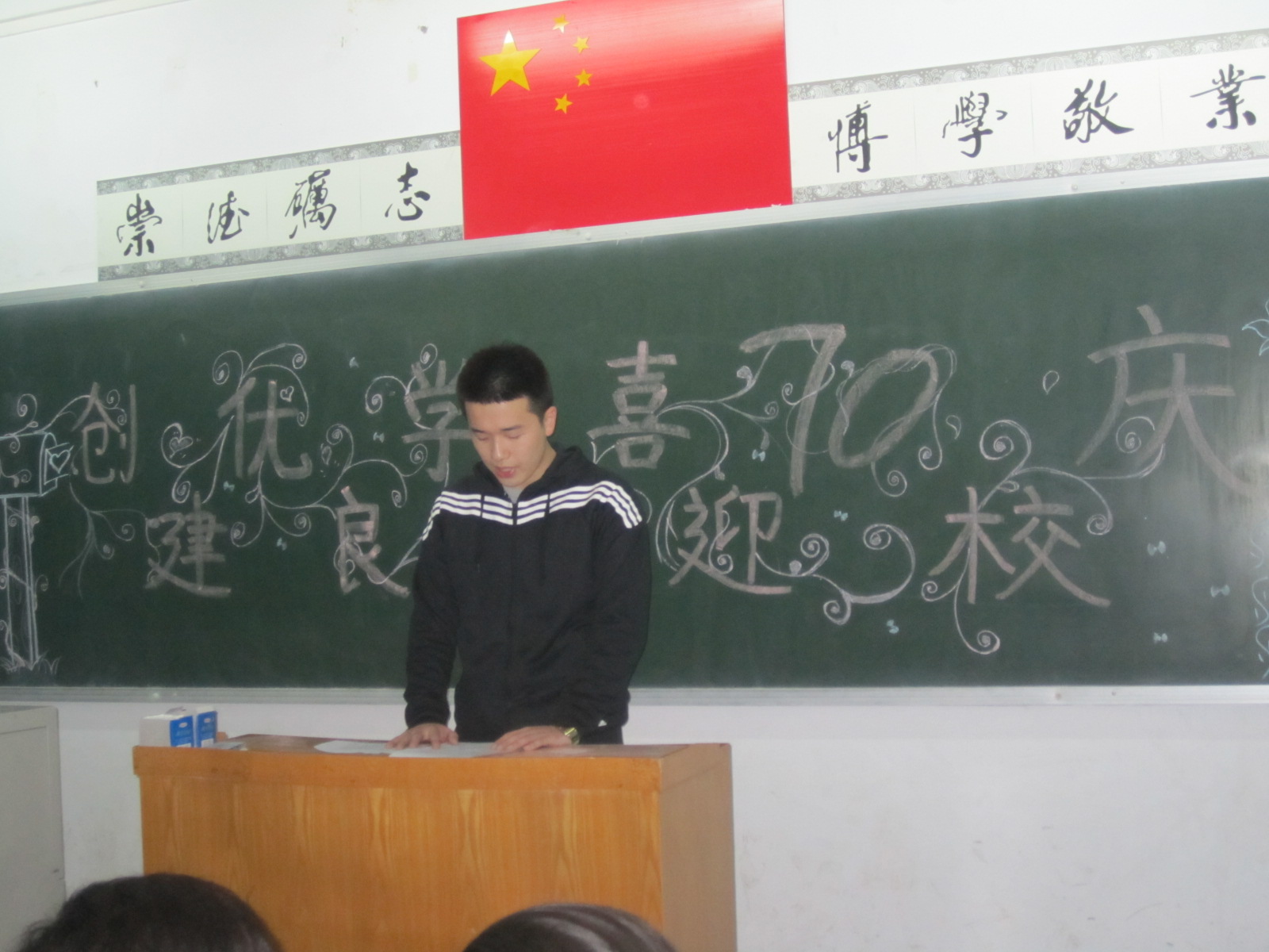 晚上七点,班会开始。首先,在各班团总支的积极组织和班长的配合下,大家纷纷表达了自己对母校太阳成集团tyc的深深祝福,并以自己特有的方式展示着自己的风采,向母校太阳成集团tyc七十周年华诞献礼。接着,针对自己专业的特性,大三、大二的同学作为学长、学姐向大一的学弟、学妹们分别介绍了自己在学习和生活方面的经验和方法。在401教室,是数字媒体技术专业的同学,班会开始,员工会主席裴新华便从校庆期间,我们该为学校做的贡献做了建议。然后,连续两年国家励志奖学金的大三同学谢丽丽作为员工代表,从学习方法和规划时间方面做了仔细的介绍,并提出自己的建议。接着,10级黄华同学以如何实现自己的目标为题做了演讲。在座的同学均获益匪浅。晚上九点,班会陆续结束。