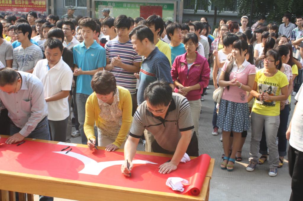 随后,广大师生纷纷参与到集体签名的活动当中,在“太阳成集团tyc纪念九一八万人签名活动”的条幅上一起铿锵有力地写下全体师生的庄严声音。